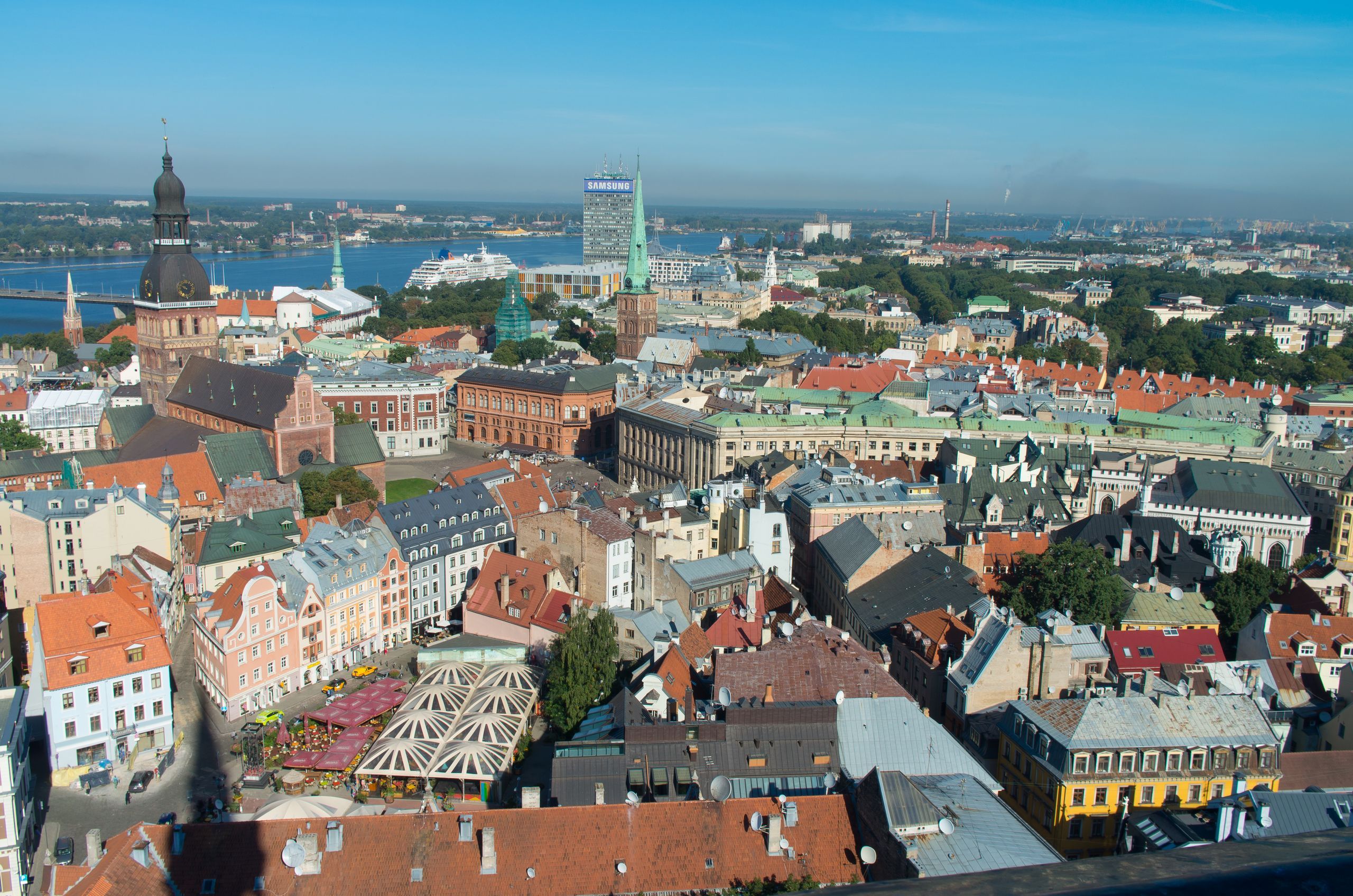 リガではロマネスク様式やゴシック様式、さまざまな時代様式で建てられた教会の尖塔が競うように伸びている。旧市街から少し足を延ばすとアールヌーボー調のマンションがならび旧ソ連時代の巨大建築もあり歩くのが楽しい街。公園でダウガヴァ川の流れを見るのもいいですね。かなり歩きますが対岸からはリガの街並みが見渡せます。